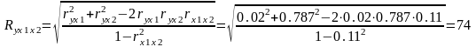 Для двохфакторної моделі множинний коефіцієнт кореляції визначається по формулі: