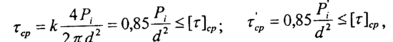 τср = 0,85*22750/(0,022)² = 39953512 (Па) < [τ] ср;.