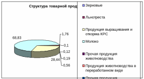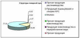 Кроме размеров на эффективность функционирования предприятия значительное влияние оказывает направление специализации и её уровень. Специализация сельскохозяйственного производства представляет собой результат общественного разделения труда. Она обеспечивает научно обоснованное разделение производства продукции, её размещение по тем зонам, где имеются для этого наилучшие условия и достигается наибольшая экономия труда и денежных затрат на единицу продукции. Основным критерием для определения специализации является структура товарной продукции – удельный вес выручки от реализации каждого вида продукции, произведённой в хозяйстве, в общей выручке. [29]