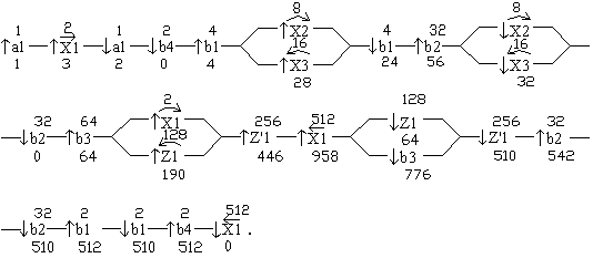 | Коды состояния тактов | 0 | 8 | 8 | 8 | 10 | 11 | 9 | 13 | 12 | 8 | 8 | 0 | 0 | 0 | 0 | 0 | 4 | 0 | 2 | 0 | 0 | 0 | ||||||||||||||||||||||||