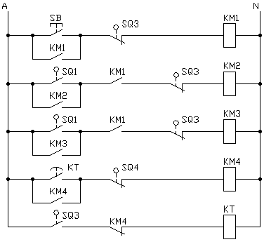 Разработку остальных цепей управления ведем аналогичным образом с добавлением необходимых элементов. Произведем описание работы полной принципиальной электрической схемы управления.