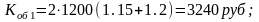 Тогда согласно прейскуранта: Цоб1 = 1200 руб., в ценах 1990 года; Цоб2 =3089,5 руб., в существующих ценах.