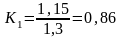 где К1 – коэффициент приведения коэффициента запаса к табличному значению;