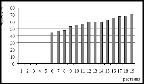 Наибольший показатель приживаемости черенков показала монстера деликатесная и плющ обыкновенный (100%), наименьший - жимолость приморская (20 %).
