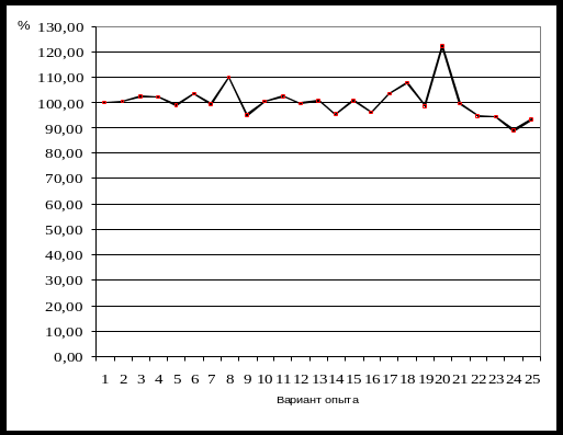 Следует отметить, что данные тенденции сохраняются и при использовании в сравнительном анализе отношения не к контрольному варианту, а к относительному приросту внутри самого варианта – в некоторых случаях относительный прирост имеет более широкий диапазон варьирования.