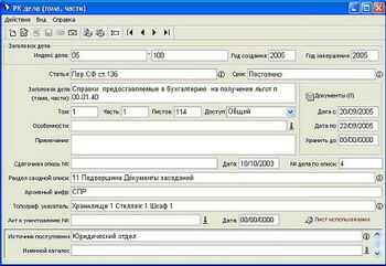 Возможность выполнять все операции по обслуживанию бумажных архивов организации: ведение и учет документального архивного фонда организации.
