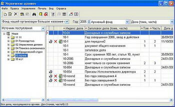 "АРХИВНОЕ ДЕЛО" - это тиражируемый, "коробочный" продукт, реализующий функции архива организации, а также функции делопроизводственных служб в части формирования и оформления дел.