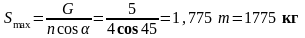 Масса 5 т, угол наклона ветви стропа принять 45 0.