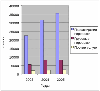 Структура оказанных услуг ТМУП «Транспорт общего пользования» в динамике трех лет
