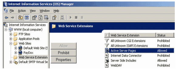Для инсталляции выделим для PayDox отдельный IP-адрес (обычно это адрес данного компьютера в корпоративной локальной сети) - программа установки попросит его ввести. Необходимо убедиться, что функциональность ASP (Active Server Pages) включена (по умолчанию в MS Windows 2003 Server функциональность ASP отключена) (рис. 12).