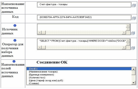 В каждой из этих таблиц необходимо предусмотреть поле DocID, которое обеспечит соответствие по номеру документа между стандартными карточками документов, хранимыми в стандартной таблице DOCS БД PayDox и дополнительными таблицами Счет-фактура - реквизиты и Счет-фактура – товары, созданными для хранения дополнительных реквизитов документов. Таблицы Счет-фактура - реквизиты и Счет-фактура – товары присоединяются к PayDox как внешний источник данных.