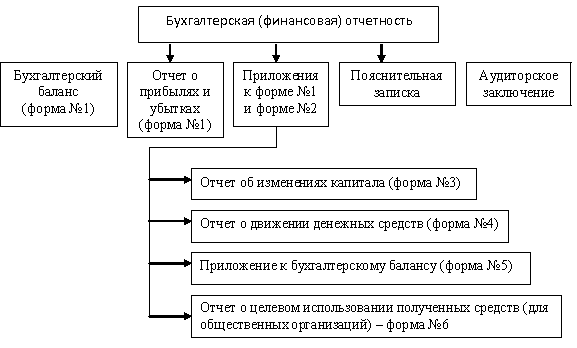 Бухгалтерская (финансовая) отчетность организаций (за исключением бюджетных) включает определенные формы0, представленные на рисунке 1.1. Отметим, что составные части финансовой отчетности взаимосвязаны, потому что они отражают разные аспекты одних и тех же операций и событий.