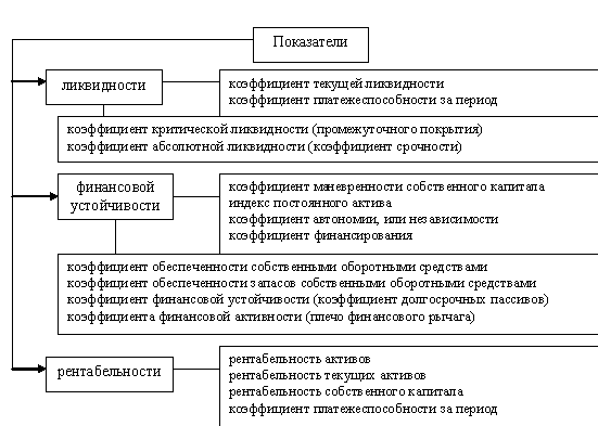Постановлением Правительства РФ о реализации Федерального закона от 30.01.2003г. №52 «О финансовом оздоровлении сельскохозяйственных товаропроизводителей» утверждена Методика расчета показателей финансового состояния сельскохозяйственных товаропроизводителей, которая установила порядок расчета показателей финансового состояния сельскохозяйственных товаропроизводителей, имеющих долги, и критерии значений этих показателей. В методике рассматриваются шесть показателей: коэффициенты абсолютной, критической и текущей ликвидности, обеспеченности собственными средствами, финансовой независимости, финансовой независимости в отношении формирования запасов и затрат. Значение каждого коэффициента при этом оценивается в баллах в соответствии с установленными критериями и по сумме баллов определяется тип финансовой устойчивости организации.