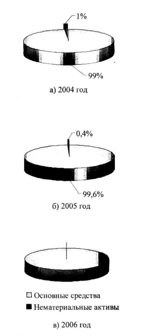 увеличением доли основных средств с 98,6% до 99,6% в2005 году и с
