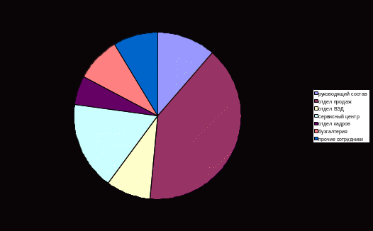 Рис 1. Структура ЗАО «Траст» (количество сотрудников, доля в общем списочном составе предприятия)