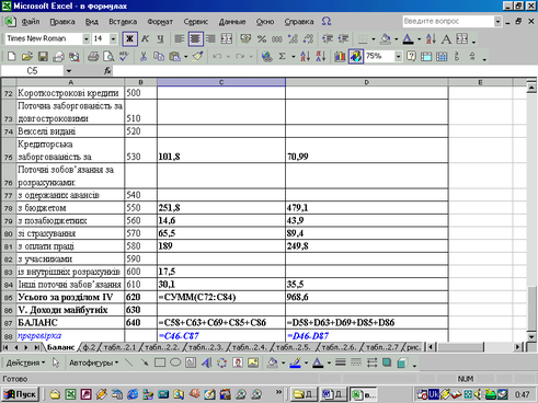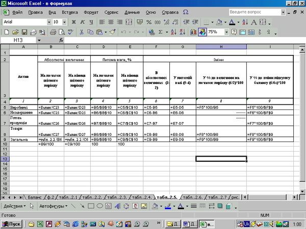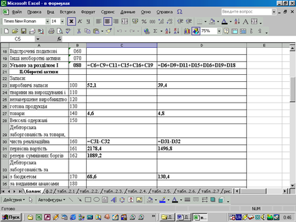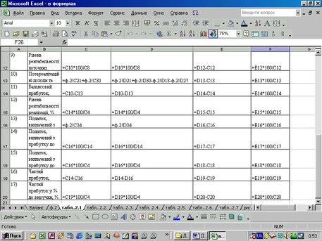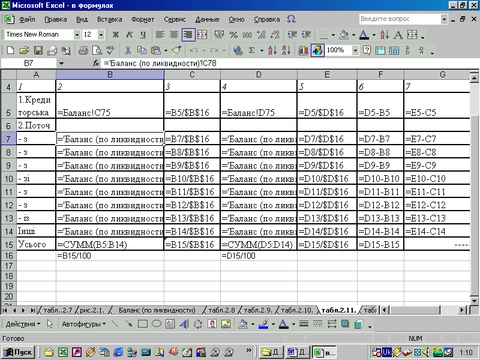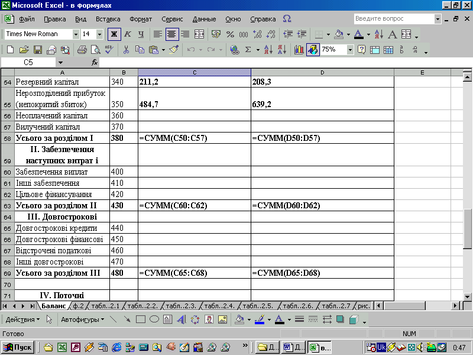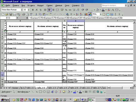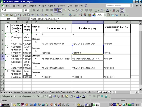 Як видно з наведених розрахунків, аналіз і аудит фінансового стану підприємства з метою визначення резервів підвищення ефективності його господарської діяльності зв'язано з об'ємними взаємозалежними розрахунками, при цьому зміна вхідних величин не змінює алгоритм рішення.