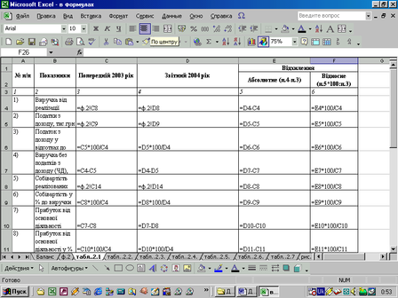 | 2 | Основні засоби та ін. необоротні активи | табл.2.3 | 3 342,60 | 3 237,40 | -105, 20 |