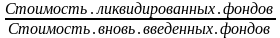 Стоимость выбывших из-за ветхости износа и вновь введенных основных фондов, а также полная стоимость наличных основных фондов берутся по балансовой стоимости за один и тот же период [18, c. 338].