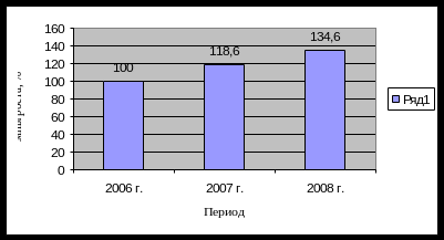 Рис. 1. Динамика реализации продукции за период 2006-2008 гг.