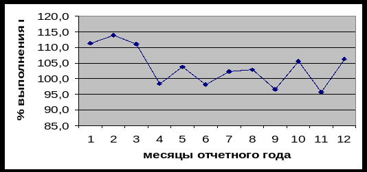 Рисунок 3.1. Равномерность выполнения плана товарооборота по месяцам отчетного 2003 года