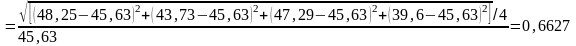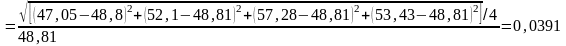 Коэффициент вариации (Кв) определяется как отношение среднеквадратического отклонения от планового задания за сутки (декаду, месяц, квартал) к среднесуточному (среднедекадному, среднемесячному, среднеквартальному) плановому выпуску продукции: