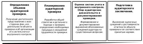 Принципы, регулирующие непосредственный процесс проведения проверки возможно свести в группы, отвечающие стадиям процесса аудиторской проверки организации.