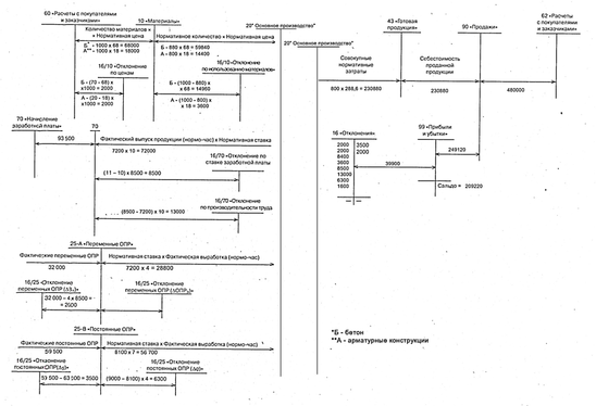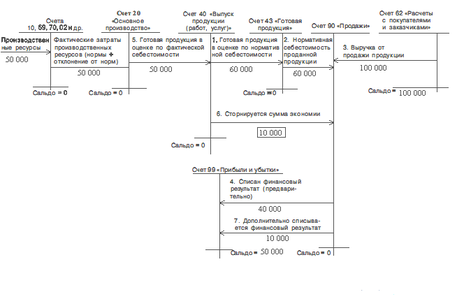 Рисунок 2 - Схема бухгалтерских записей при использовании нормативного метода учета затрат и калькулирования (экономия).