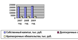Собственный капитал организации претерпевает изменения следующего характера: в 2008 году наблюдается его снижение на 278 тыс. руб. по сравнению с предыдущим годом, но уже в 2009 году его доля возрастает на 7, 71% и составляет 21939 тыс. руб.