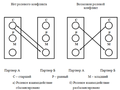 Может сложиться ситуация, при которой партнер А будет считать себя старшим, а партнер Б – младшим. Партнер Б, в свою очередь, будет считать старшим себя, а партнер А – младшим. При таком разбалансе ролей возможен ролевой конфликт.