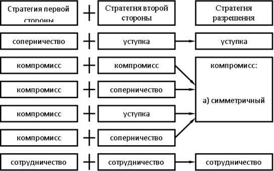 Рисунок 1.3 – Зависимость способа разрешения конфликта от стратегий, выбираемых оппонентами