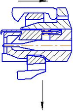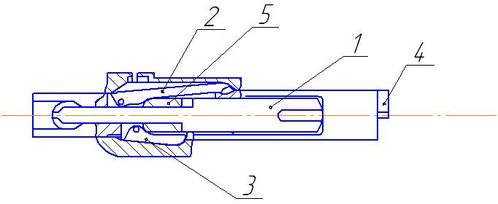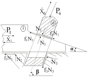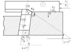 При движении взводной муфты 1 (рисунок 7.1) под действием давления пороховых газов она воздействует на клин 2 с силой, перпендикулярной наклонной поверхности на клине