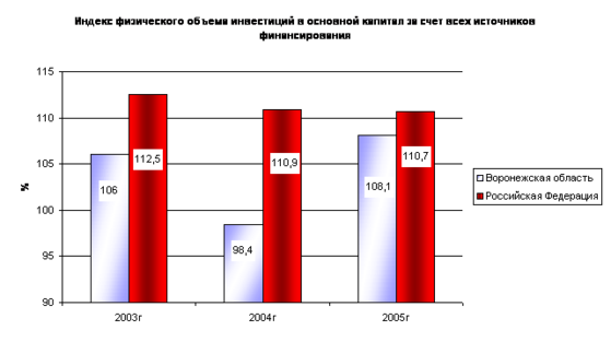 В 2006 году объем инвестиций в экономику области составил 36,3 млрд.рублей, прирост к 2005 году – 12,4% ( в среднем по областям ЦФО – 6,9%, по РФ – 13,7%).