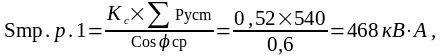 Выбор участковой подстанции. Определим мощность трансформатора для 1-группы: