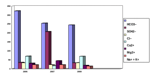 Рис. 3.2. Мінералізація та головні іони в гирлі р.Стрижень