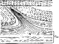 Іноді при русі льодовика й утворенні основних морен відбувається видавлювання льодовиками підстилаючих глинистих, супіщаних і інших порід, що утворять куполи, деформовані в складки, називані діапіровими (гречок. "диапиро" - протикаю). Усі зазначені деформації називаються гляціодислокаціями (лат. "гляціес" - лід і франц. "дислокацією" - переміщення) (мал. 1.9). До цього ж типу відносяться й відірвання брил і валунів гірських порід, перенесених льодом на різні відстані від їхнього корінного залягання [12]. Прикладом тому є брили і валуни гранітів, гнейсів і інших порід, що розносилися на значні простори Східно-Європейської платформи зі Скандинавії - центра четвертинних заледенінь. Такі брили і валуни, перенесені льодом на великі відстані, називаються ератичними (лат. "ера-тикус" - блукаючий). Місцями в четвертинних основних моренах спостерігаються великі відірвання - величезні блоки корінних порід.