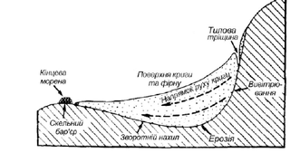 Рис. 1.7. Схематичний розріз льодовикового цирку