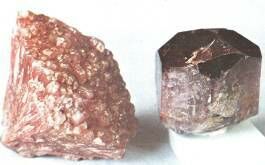 Альмандин – наиболее распространенный ювелирный гранат. Название его связано с несколько искаженным названием местности Алабанда в Малой Азии. Где в давние времена обрабатывали ювелирные камни. Плиний Старший называет альмандин «алабандской венисой». Известны и другие названия альмандина: карбункул( так называли и пиропы), антракс, карфукельштейн, восточный гранат, сириамский гранат (Сириям – столица древнего королевства Пегу, находившегося на территории современной Бирмы), благородный гранат и др (Рис.12). Фиолетово-красные альмандины называют сериямом, красные, «цвета бургундского вина» - драгоценным (благородным) гранатом, красные с коричневым оттенком – фалумом, густо-красные, почти черные – обыкновенным гранатом. Чистые альмандины состава Fe3Al2[SiO4]3 встречаются редко, чаще всего в них присутствует пироповая составляющая, а также примеси Fe3+ , Ca и др [5].