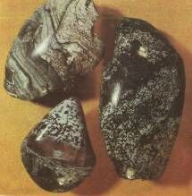 Агат – один из самых красивых камней среди халцедонов. Нарядная полосчатость, образованная слоями от долей до нескольких миллиметров, тонкие цветовые переходы, насыщенная палитра окраски этого камня – все это делает его крайне привлекательным. Различные изделия из агата известны с глубокой древности: в гробницах около Алушты обнаружены бусы из агата, относящиеся к V веку до н.э., около Симферополя в скифских захоронениях III в. до н.э. находили ожерелья из халцедона, агата, оникса и др [9].