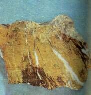 Интересный поделочный материал – окаменелое дерево опалово-халцедонового состава, встречающееся в сарматских отложениях Ленинского района на Керченском полуострове. Здесь в карьерах, где добывается мергель для строительных целей, попадаются обломки стволов древних сосен длиной от 10 до 80 см при толщине 20-60 см. Снаружи древесная кора у них замещена белоснежным опалом, а сердцевина заполнена кисельным или сургучным халцедоном. Годовые кольца имеют голубоватую или желтовато – коричневую окраску. Наличие на поверхности некоторых стволов опаловой коры и сохранившихся сучьев придает окаменелому дереву еще большую декоративную выразительность. На месте разрушенных частей древесины остаются иногда пустоты, на стенках которых вырастают прозрачные кристаллики горного хрусталя.