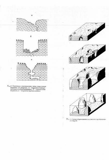 Карстовые останцы характерны для весьма зрелых стадий развития карста. Они многочисленны и разнообразны в быстро развивающемся соляном карсте. В карбонатном же карсте останцы свойственны тропическим областям, если не иметь в виду разного характера мелкие, а также реликтовые формы, образовавшиеся в прежних тропических условиях (рис. 3).