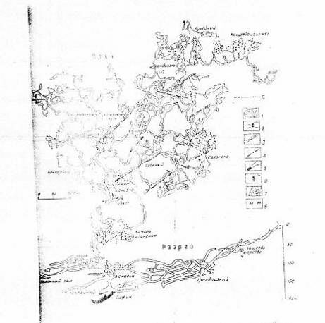 Рис. 8. План и разрез пещеры Кубинская (по данным Красноярского спелеоклуба):
