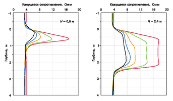 — определение удельного электрического сопротивления неизмененной части пласта, зоны проникновения фильтрата бурового раствора с оценкой глубины вытеснения пластовых флюидов;