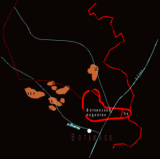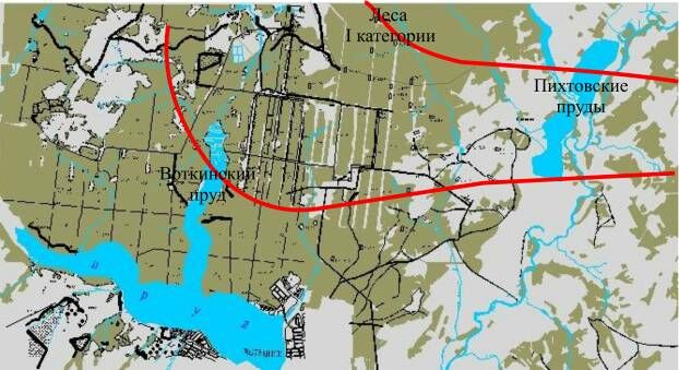 В восточной, юго-западной и северной частях месторождения расположены охранные зоны: Пихтовские пруды, Воткинский пруд и леса I категории, р. Вотка, (рис. 2). Кроме того, граница водоохранных зон составляет: Воткинский пруд - 500 м, Пихтовские пруды - 300 м, р. Вотка – 200 м. Бурение под охранные зоны в настоящее время затруднено из-за невозможности получить от государства разрешение на подготовку кустов, расположенных в этих зонах.