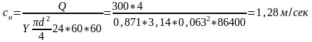 Определяем среднюю скорость движения нефти по трубам 2,5":