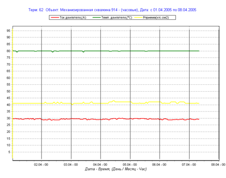 Что дает нам увеличить депрессию на пласт таким образом увеличиваем приток в скважину. Осуществляется контроль по Региону-2000. за токовыми нагрузками электродвигателя, температуры, давления на приеме насоса, это дает нам оперативное решение по скважине по какой причине остановилась скважина, как показано на рисунке 5.9