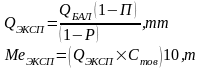 Формулы расчёта для определения эксплуатационных запасов блока: