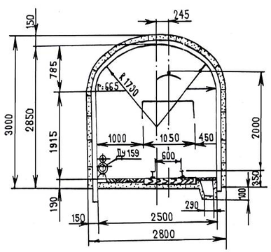 Проходка горизонтальных горных выработок (рельсовых) осуществляется машиной ППН-1С. Сечение горных выработок показано на Рис 3.