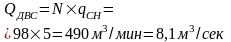 q СН = 5 м 3 /мин – количество свежего воздуха в блоке, обеспечивающее снижение концентрации вредных продуктов выхлопа в рудничной атмосфере до санитарных норм.;