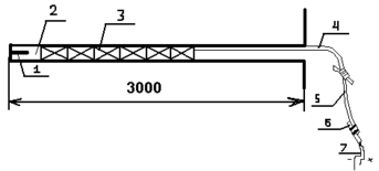 Рис. 8. Конструкция заряда: 1 - КД; 2 - патрон-боевик; 3 - патроны ВВ; 4 - волновод; 5 - ДШ-А; 6 - ЭД; 7 - концевые провода.