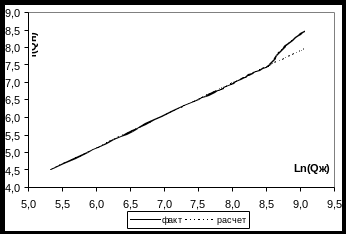 Рис. 17. Зависимость Ln(Qн) от Ln(Qж) для скважины №2